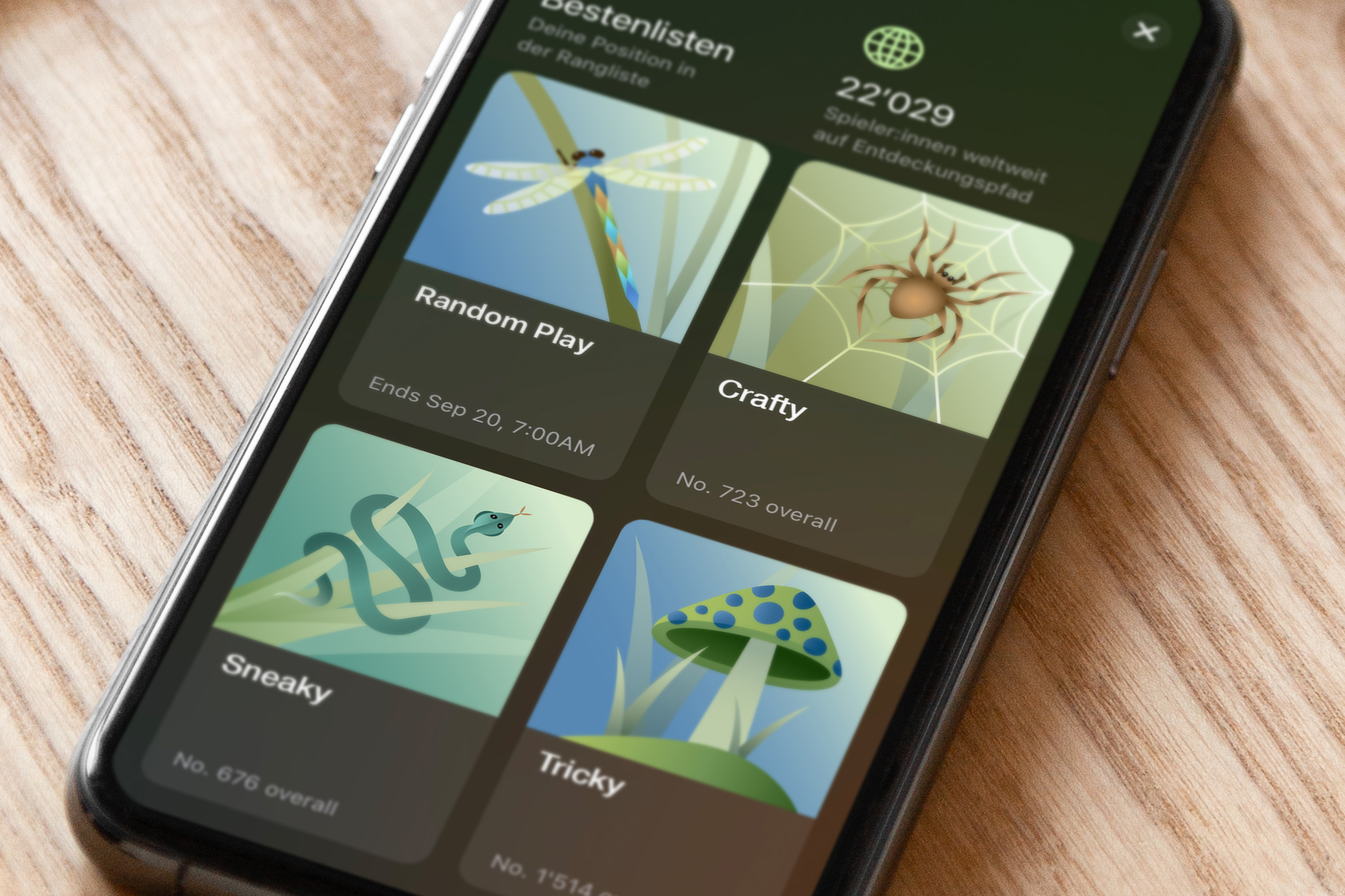 Illustrationen für ein Knobelspiel, das im App Store erhältlich ist. Als Maskottchen begleitet ein schlauer Fuchs die Spielenden durch die Levels. Verschieden Waldtiere sorgen dabei für charmante Abwechslung und zieren die einzelnen Rätselwelten. Für den Sommer entstand zudem ein fröhliches Special mit saisonaler Illustration.